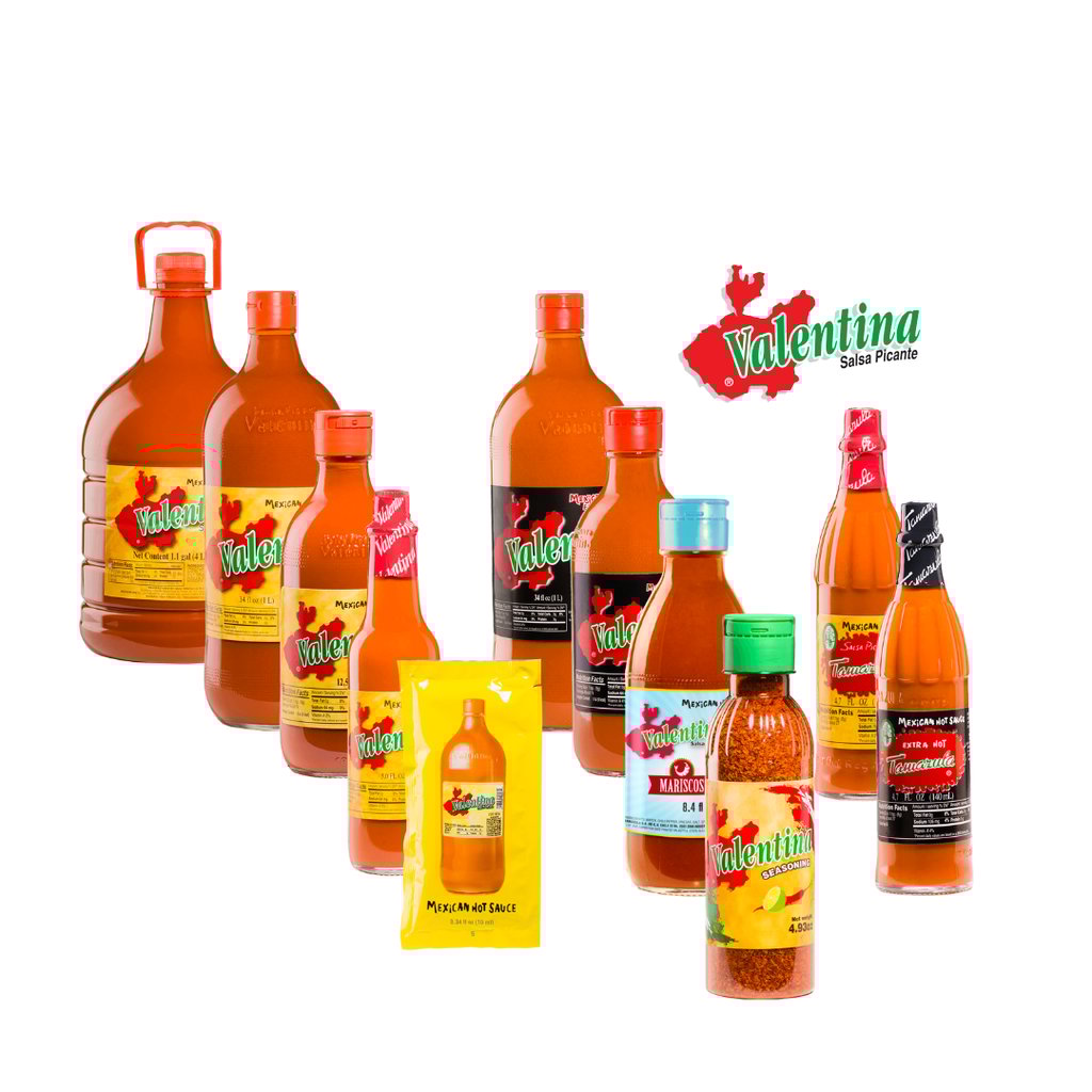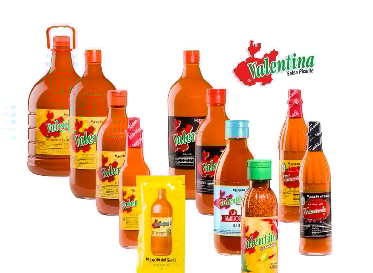 Our flagship line since 2012, specializing in high-volume distribution of the authentic Valentina & Tamazula portfolio. We carry the full range of classic and specialty labels in all commercial sizes—from individual portion packets to 1.1-gallon bulk containers—optimized for nationwide FTL and pallet-level distribution.
